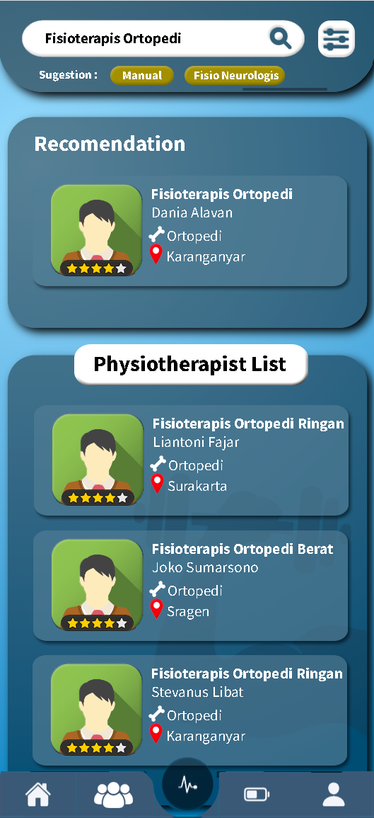 This is a menu view of physiotherapists, which can help us to consult with them online. We will also help to recommend the best physiotherapist.